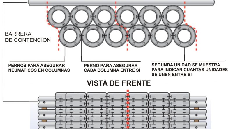 * Los neumáticos deben estar abulonados y/o ligados entre sí firmemente en tantas partes como sea posible .-
