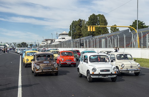 caravana de cientos de Fiat 600 que comenzó en el autódromo de Buenos Aires hasta el